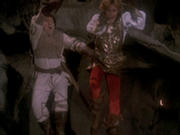 Marko pulling Erik away from flames. |